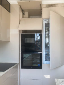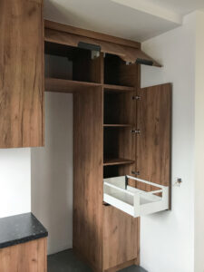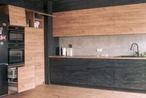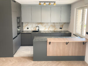 witrynki w czarnej ramce aluminiowej ze szkłem dymionym